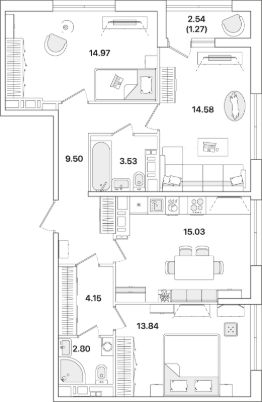 Также в радиусе 1,5 км от объекта находятся 2 торгово-развлекательных комплекса и 3 гипермаркета.
