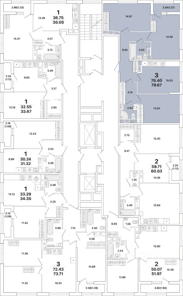 Квартира находится в 12 этажном доме, в Академик Жилой дом 1 на 12 этаже. Общая площадь квартиры 79,70 кв.м.