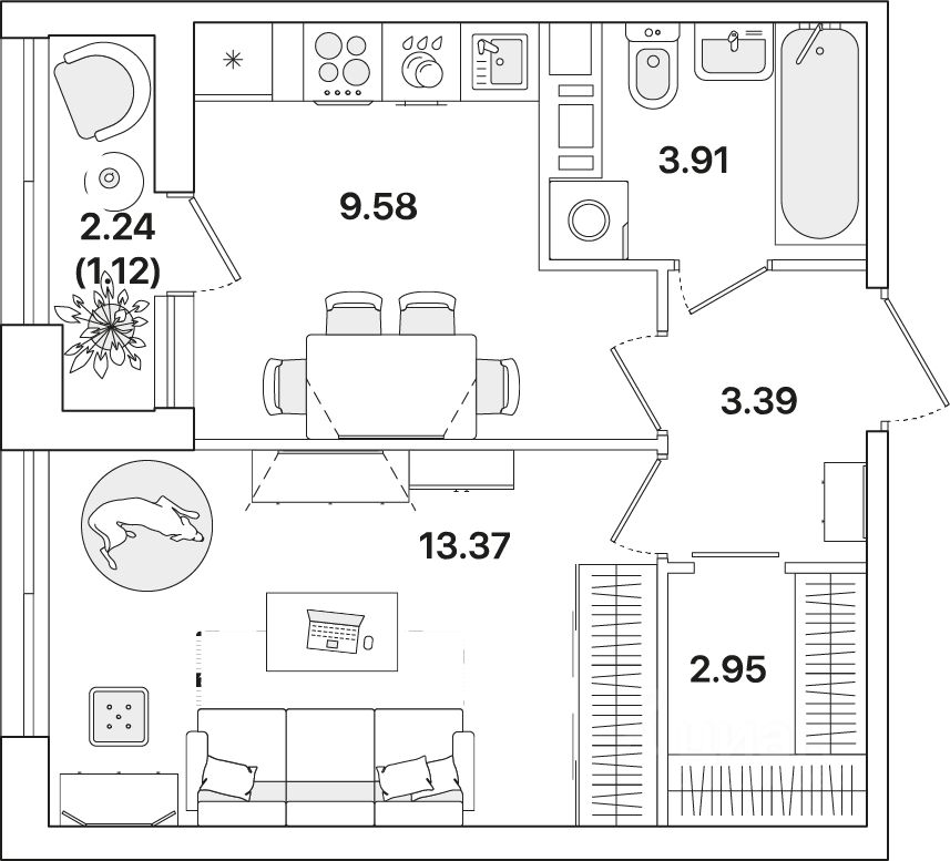 В доме есть квартиры разных метражей от студий до трехкомнатных, в том числе европланировки с просторной кухней-гостиной, а также лоты с мастер-спальнями. Квартиры на верхних этажах (10-м, 11-м и 12-м) имеют увеличенную площадь остекления и более высокие потолки (до 3 метров). Есть варианты с чистовой отделкой, предчистовой отделкой white box и без отделки.