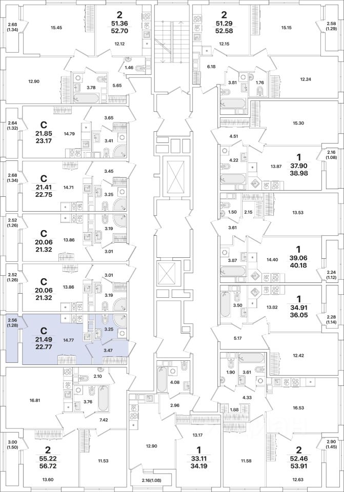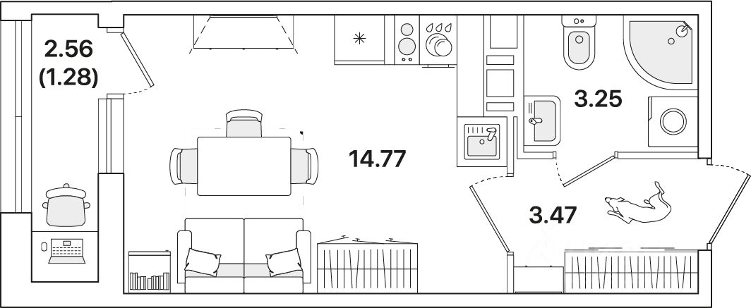 Квартира находится в 12 этажном доме, в Академик Жилой дом 3 на 3 этаже. Общая площадь квартиры 22,77 кв.м.