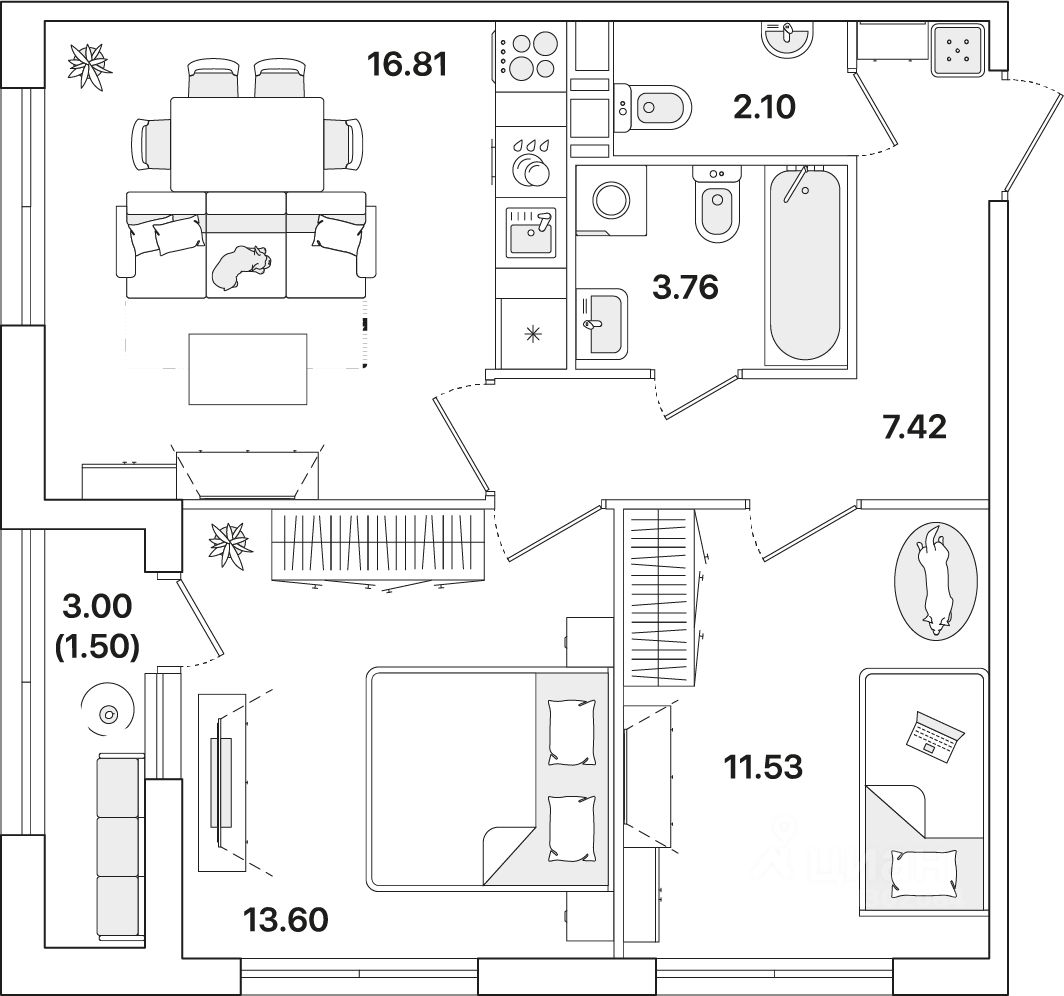 В доме есть квартиры разных метражей от студий до трехкомнатных, в том числе европланировки с просторной кухней-гостиной, а также лоты с мастер-спальнями. Квартиры на верхних этажах (10-м, 11-м и 12-м) имеют увеличенную площадь остекления и более высокие потолки (до 3 метров). Есть варианты с чистовой отделкой, предчистовой отделкой white box и без отделки.