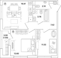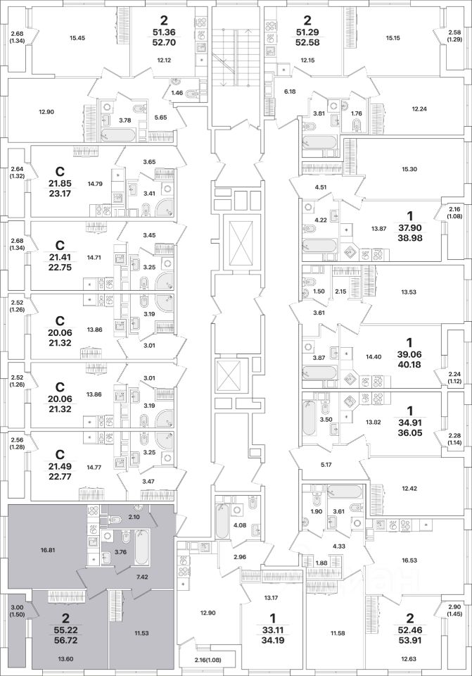 Квартира находится в 12 этажном доме, в Академик Жилой дом 3 на 4 этаже. Общая площадь квартиры 56,72 кв.м.