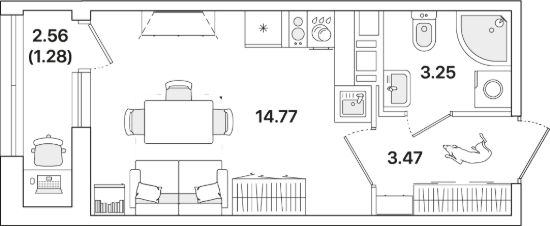 Квартира находится в 12 этажном доме, в Академик Жилой дом 3 на 8 этаже. Общая площадь квартиры 22,77 кв.м.