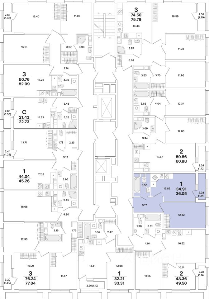 Квартира находится в 12 этажном доме, в Академик Жилой дом 3 на 10 этаже. Общая площадь квартиры 36,05 кв.м.