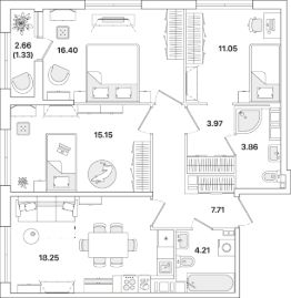 Продаётся 3к.кв. в ЖК Академик от застройщика Холдинг "РСТИ" (Росстройинвест).