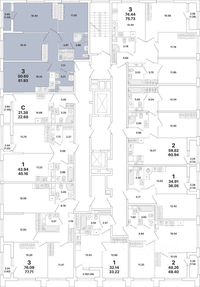 Квартира находится в 12 этажном доме, в Академик Жилой дом 3 на 11 этаже. Общая площадь квартиры 81,70 кв.м.