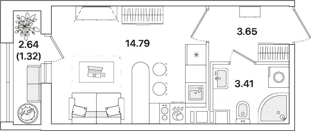 Квартира находится в 12 этажном доме, в Академик Жилой дом 2 на 7 этаже. Общая площадь квартиры 23,17 кв.м.