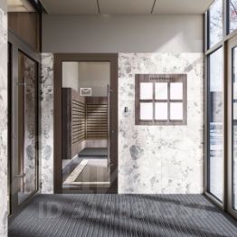В доме есть квартиры разных метражей от студий до трехкомнатных, в том числе европланировки с просторной кухней-гостиной, а также лоты с мастер-спальнями. Квартиры на верхних этажах (10-м, 11-м и 12-м) имеют увеличенную площадь остекления и более высокие потолки (до 3 метров). Есть варианты с чистовой отделкой, предчистовой отделкой white box и без отделки.
