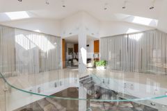 Лестница со стеклянным ограждением сохраняет эффект "парения" и многократно усилена для безопасности эксплуатации.