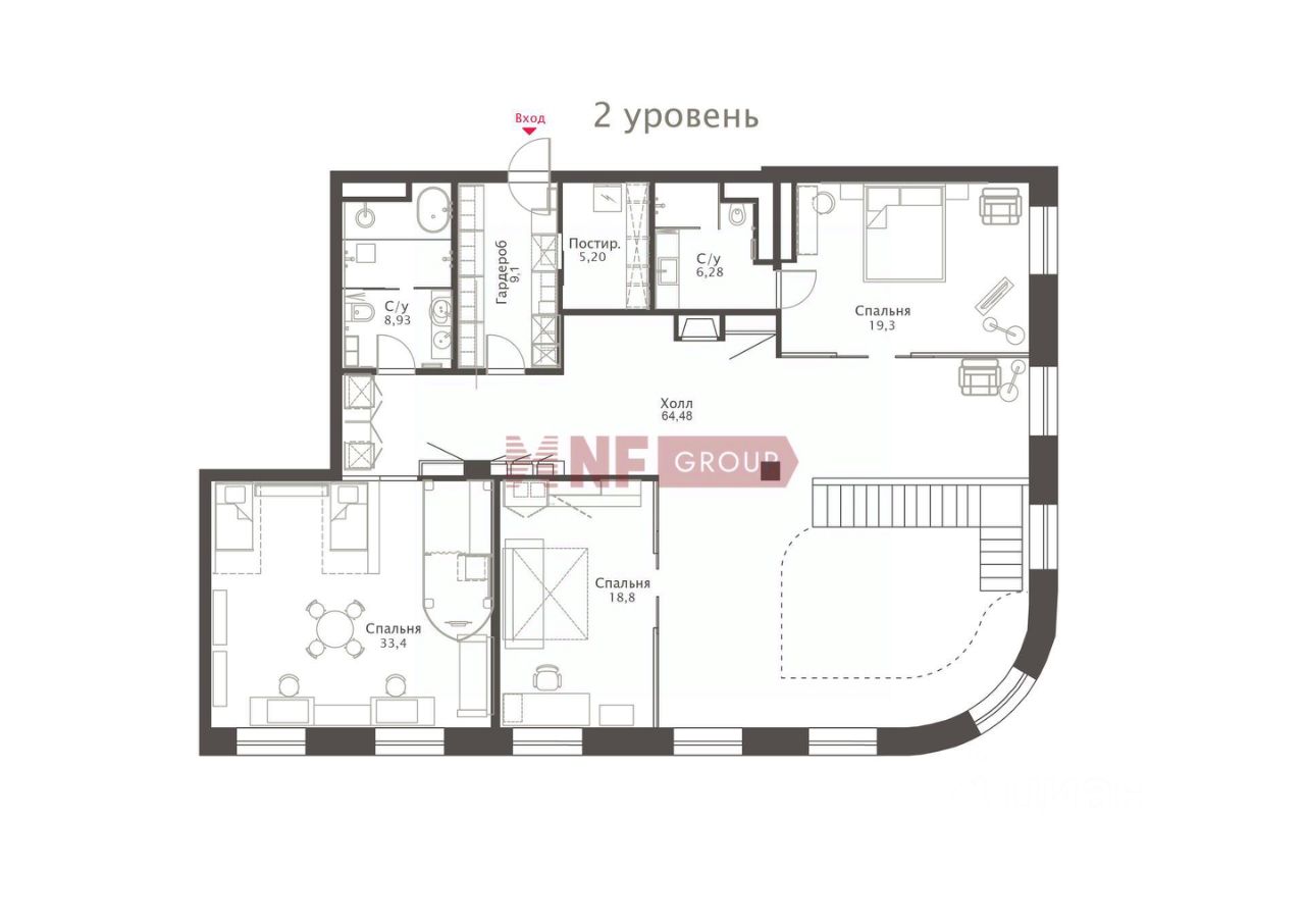 Второй уровень традиционно 3 спальни, из мастер-спальни вход в собственный санузел с душевой. Санузел с душевой для детских. Максимум свободного пространства сохраняют продуманные зоны хранения. Большие гардеробные на обоих уровнях, постирочная с бытовой техникой премиум-класса, хозяйственная комната, гостевой санузел.