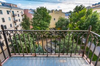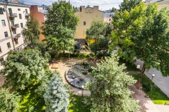 Балкон выходит во двор на солнечную сторону. Окна квартиры — на обе стороны: Большой проспект и зелёный, ухоженный двор.