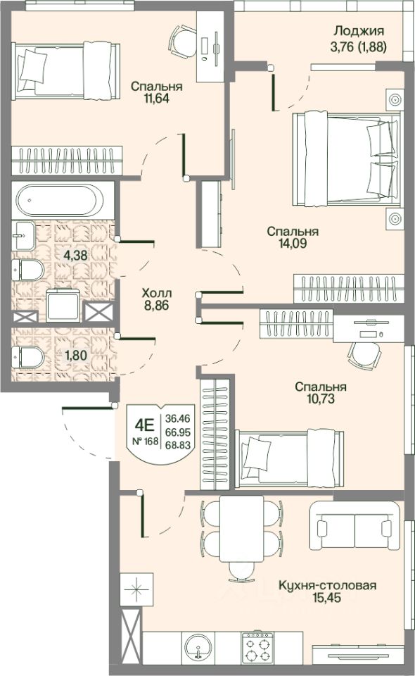 Продается 3-комнатная квартира в Квартале "Охтинские Высоты".