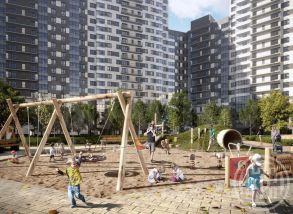 Дом с безбарьерным пространством, выходом на закрытый двор без машин со спортивными, детскими площадками, гамаками для отдыха. Здесь расположен детский сад. Также есть выход на открытую парковку.