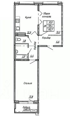 Продам 2- комнатную квартиру с кухней- гостиной и с лоджией в ЖК Сибирь .