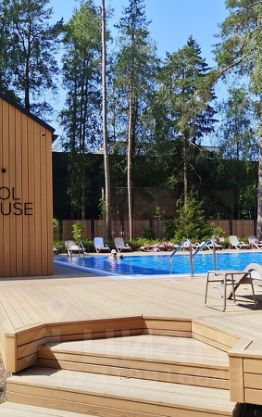 собственная инфраструктура: на территории комплекса расположен подогреваемый круглогодичный бассейн под открытым небом, теннисный корт, СПА - комплекс с финской сауной, хамамом, тренажёрным залом, гастробар,