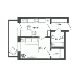 Квартира площадью 30,37 кв. м на 4 этаже 12-этажного дома, построенного в 2023 году. Кирпично-монолитный дом с железобетонными плитами перекрытия обеспечивает высокую надёжность и хорошую звукоизоляцию.