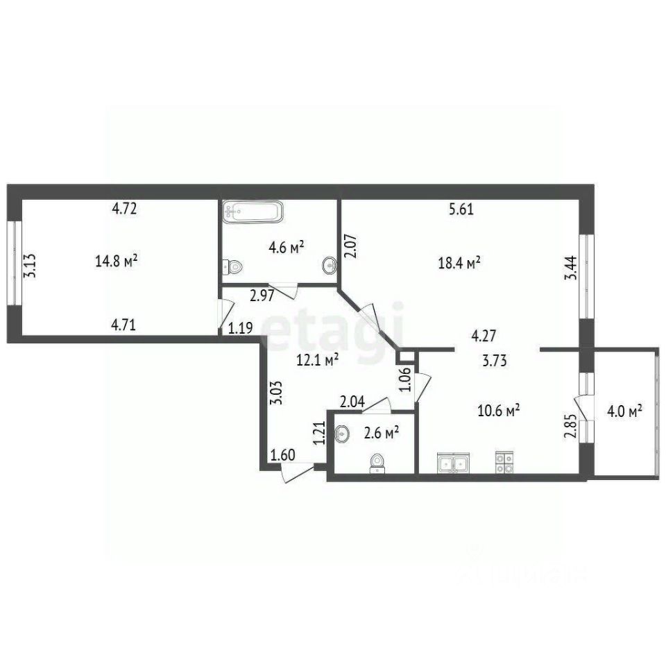 Эргономичная продуманная планировка с двумя просторными изолированными комнатами, большим балконом и просторной кухней.