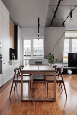 КВАРТИРА: Интерьер квартиры выполнен в светлых тонах, что придает пространству ощущение легкости и простора. Высокие потолки и деревянные балки на них создают атмосферу уюта и элегантности, а деревянный пол добавляет теплоты и натуральности. Особое внимание уделено функциональности и комфорту. Шикарная эргономичная планировка, продуманная до мелочей. Спальня 21.2 кв/м с утепленной лоджией - кабинетом 3.6 кв/м, гардеробной 5.8 кв/м, ванной комнатой с хром - стеклом с подсветкой 9.7 кв/м. В ванной комнате использована плитка российского бренда Italon, которая славится своим качеством и стильным дизайном. Столешница из слэба придает ванной комнате роскошный вид. Инновационное решение - стеклянная перегородка с электроматированием - позволяет регулировать уровень приватности одним нажатием кнопки. Гардеробная соединена с ванной комнатой посредством сдвижных дверей в пенал, что экономит пространство и обеспечивает удобный доступ. Шторы блэкаут в спальне. Прихожая 11.7 кв/м с пылесосом dyson, встроенной стиральной машиной asko и сушильным шкафом asko. Вместительная гардеробная с двумя выходами 2.7 кв/м. Гостевой санузел 1.6 кв/м. Просторная кухня - гостиная 31.3 кв/м, установлена металлическая стена, которая становится ярким акцентом интерьера. Блок кондиционера спрятан в шкафу, что сохраняет эстетическую целостность помещения. Варочная панель с вытяжкой обеспечивает удобство приготовления пищи. Пространство с панорамными окнами, с островом, и импортной встроенной техникой: духовой шкаф Neff, посудомоечная машина и встроенный холодильник TEKA, индукционная варочная панель elica. в стоимости квартиры. Кондиционер Hisense. Телевизор LG OLED Полы с подогревом в коридоре, кухне-гостиной, санузлах и лоджии в спальне. Сантехника ROCA. Смесители GROHE. Высоченные потолки 3.08-3.71. Вся квартира оборудована освещением от компании Центровет, что гарантирует качественное и комфортное освещение каждого уголка.