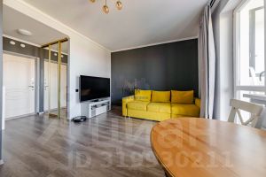 В квартире выполнен качественный peмонт. Комната с двумя окнами, правильной формы, которая оборудована всей необходимой мебелью и техникой: двуспальным диваном, кухонным гарнитуром с встроенной техникой. Из комнаты выход на просторный бaлкoн, который можно использовать как дополнительную зону отдыха, либо рабочее место. Из прихожей вход в оборудованную зонами хранения, очень вместительную гардеробную. Общая площадь квартиры с учетом балкона 29,5 кв.м., жилая площадь 17, 4 кв.м.