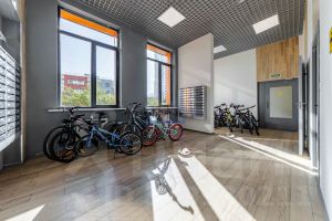 Видеонаблюдение по периметру дома, в лифте и парадной. В доме установлены современные лифты (пассажирский и грузовой). Так же грамотно расположены места общего пользования: колясочная, места хранения велосипедов, лапомойка для животных. Двойной выход из дома. Закрытый двор без машин (калитки на магнитных замках) с детской площадкой, тренажерами и зоной отдыха.
