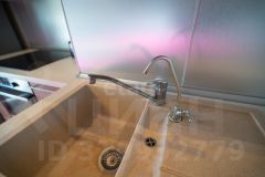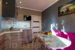- Просторная кухня с современным дизайном, оснащенная удобной мебелью и максимальным пространством для хранения. На кухне есть диван, который превращается в удобное спальное место когда приехали гости.