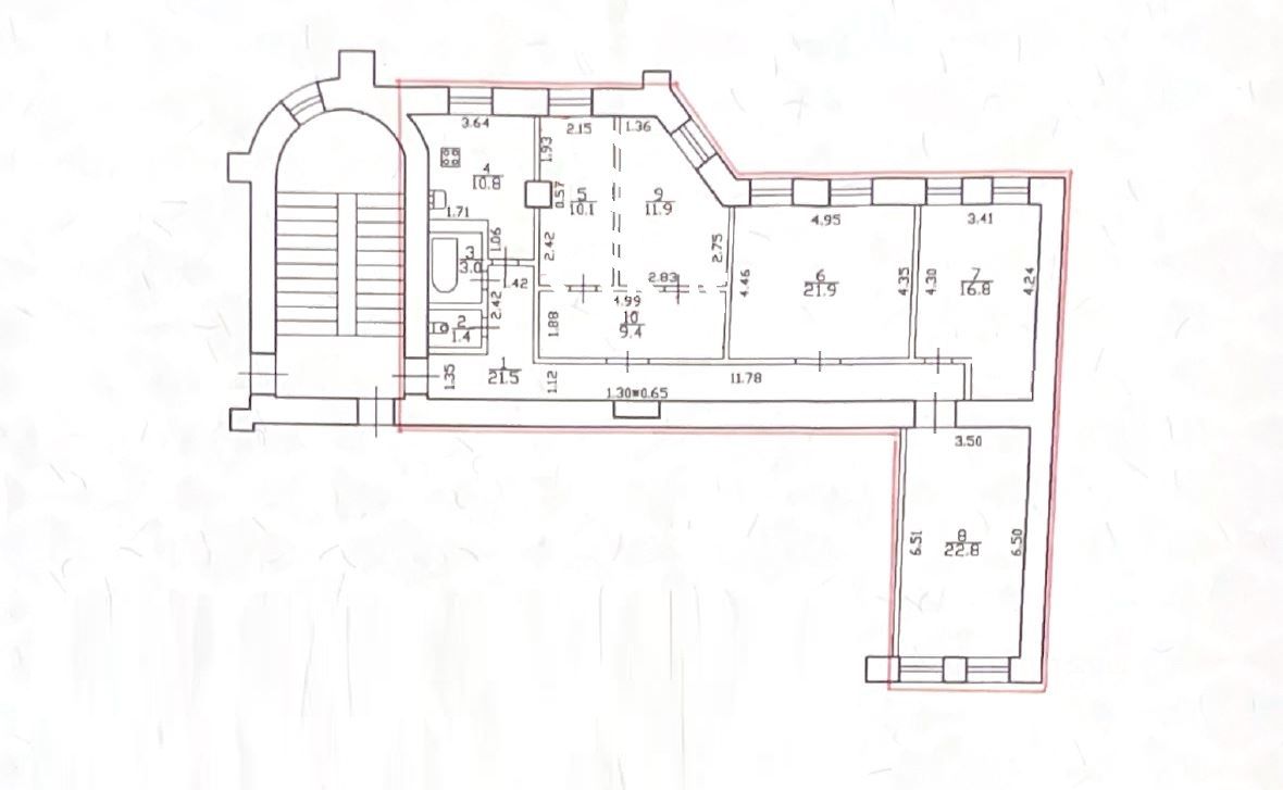 Дом с кап.ремонтом,ж/б перекрытия. Общая площадь квартиры 130 кв. м., все комнаты изолированные 21,9-16,8-22,8-31,3 (разделена перегородкой на 3 помещения) кв. м., площадь кухни 10.8 кв. м., высота потолков 3,40 м. Окна выходят в закрытый благоустроенный двор и на улицу.