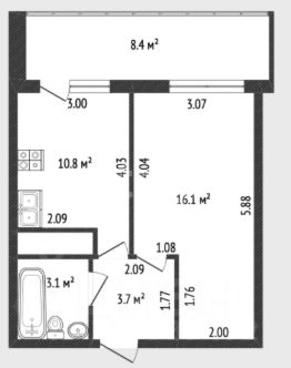И огромная лоджия -8.4м2 (где можно оборудовать дополнительное пространство для кабинета)