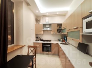 Современная встроенная кухонная мебель с бытовой техникой остается покупателю;