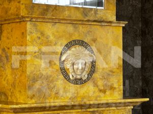 Особенностью квартиры является терраса площадью почти 33 квадратных метра, которая идеально подходит для отдыха и релаксации, а так же встреч с друзьями и приятными вечерними посиделками. На террасе установлен камин, выполненный из натурального камня и голова медузы выполнена из оникса, что создаёт атмосферу уюта и комфорта.