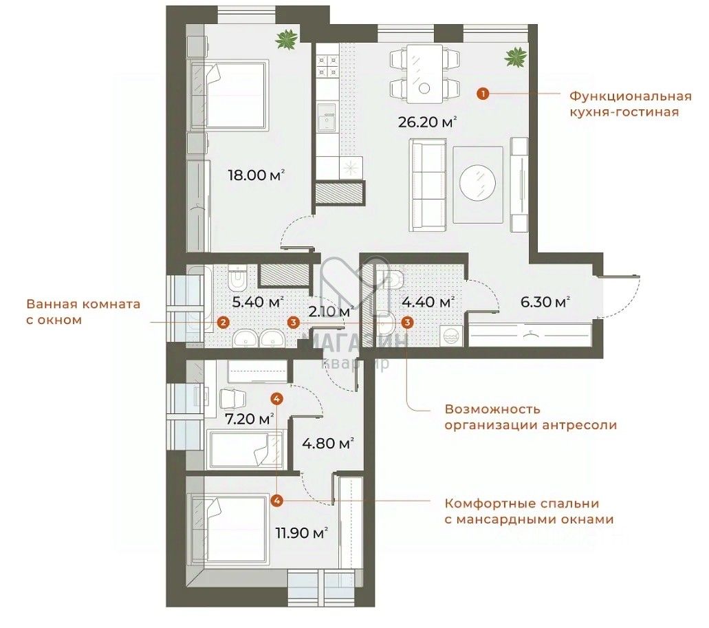 - Кухня - 26 м2