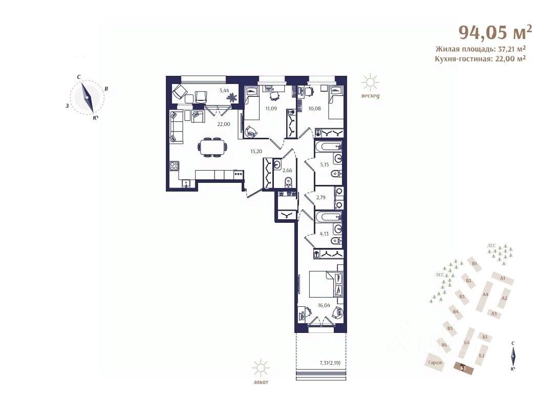 Просторная трехкомнатная квартира - Family- формат, в которой продумана каждая деталь для проживания семьи.