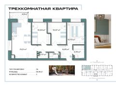 Продаётся 3-комнатная квартира в строящемся доме (Дом 6), срок сдачи: I-кв. 2028, общей площадью 68.46 кв.м., на 9 этаже. Новый клубный дом "Аксиома.Возрождение" от застройщика "Аксиома" расположен по адресу: г. Кировск, ул. Красных Сосен, 6