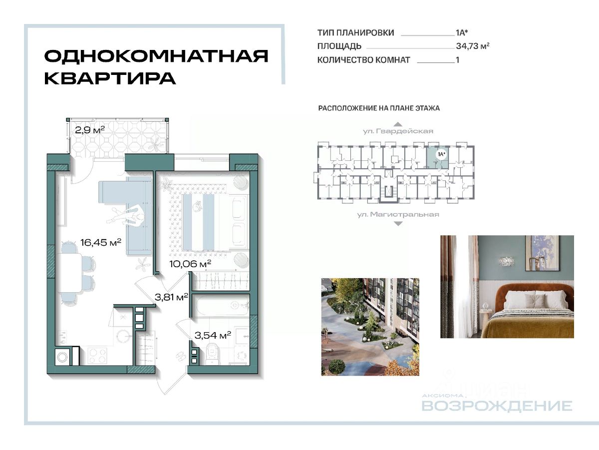 Продаётся 1-комнатная квартира в строящемся доме (Дом 6), срок сдачи: I-кв. 2028, общей площадью 34.73 кв.м., на 10 этаже. Новый клубный дом "Аксиома.Возрождение" от застройщика "Аксиома" расположен по адресу: г. Кировск, ул. Красных Сосен, 6