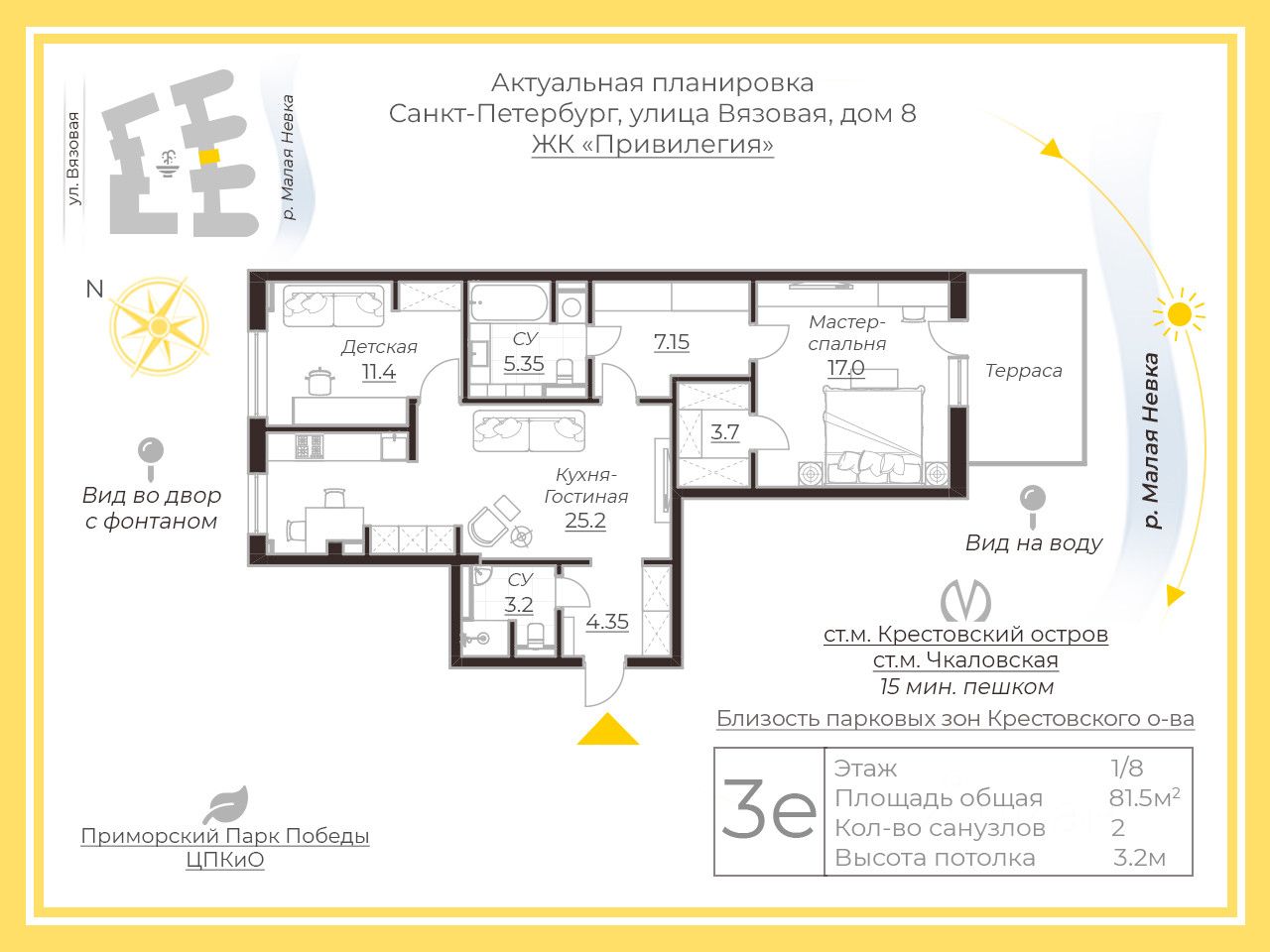 Арт. 111429320 В продаже функциональная двухсторонняя квартира на высоком 1 этаже в ЖК премиум-класса "Привилегия".