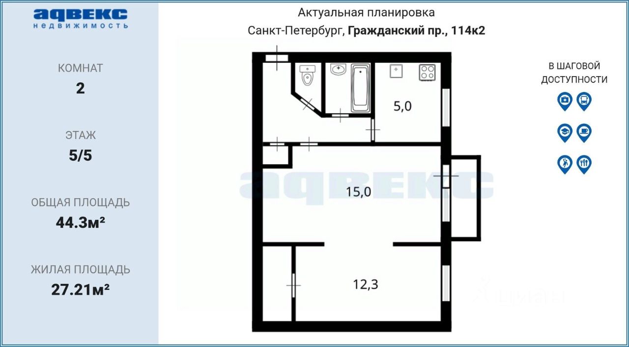 Расположение — всего в 5 минутах пешком от метро Гражданский проспект. В районе отлично развита инфраструктура: рядом школы, детские сады, магазины, поликлиника, аптеки и зоны отдыха.