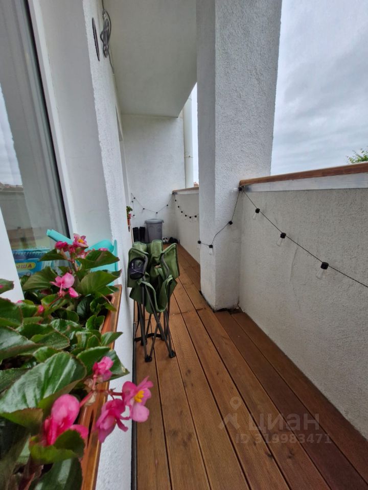 Огромная лоджия - 6 кв.м. полностью продумана по материалам для открытого использования. Вид на зеленую территорию комплекса. Во дворе - дет.площадка, в соседнем доме - дет.сад.