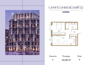 Квартира с одной спальней в комплексе "Сампсониевский 32" от LEGENDA на 7 этаже.
