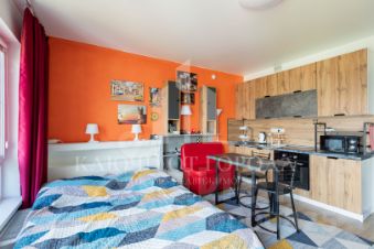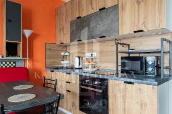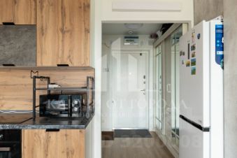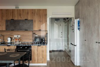 Квартира находится на 24-м этаже 24-этажного кирпичного дома, построенного в 2022 году. Общая площадь квартиры составляет 25.4 кв. м, а площадь кухни —6 кв. м. Высота потолков — 2.75 метра, что добавляет пространства и света. Окна выходят во двор, на лес, обеспечивая тишину и спокойствие. В квартире сделан дизайнерский ремонт, что позволяет сразу заехать и жить. Кухня оборудована современной техникой, сенсорная подсветка рабочей зоны, шторы раздвигаются с пульта, создают комфортные условия для проживания. Установлена полноценная ванная в совмещённой комнате с с/у.