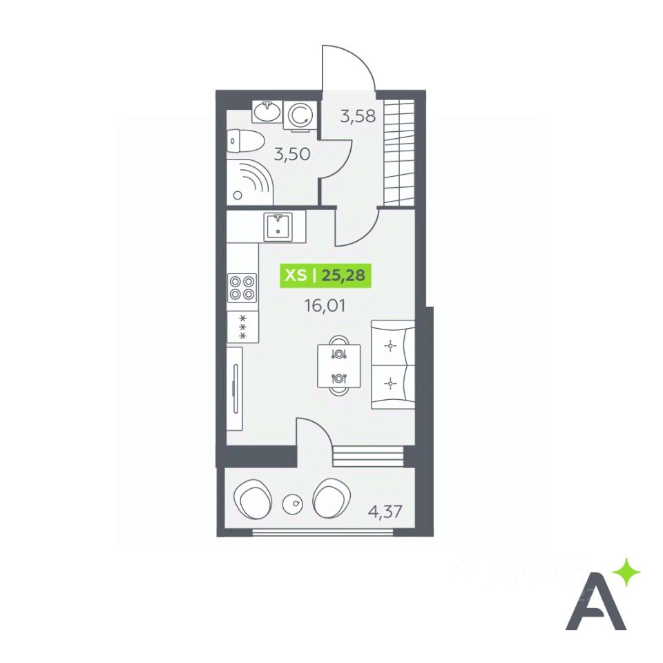 Общая площадь25,28 м²