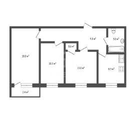Общая площадь квартиры составляет 62,2 кв. м. Три изолированные комнаты (18,7 кв. м, 10,3 кв. м и 13 кв. м) обеспечивают удобство и уединение, к одной из комнат примыкает открытый балкон. В квартире делался капитальный ремонт, всё сделано качественно и с любовью.