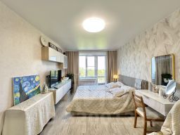 Квартира расположена на 9 этаже, технический этаж защищает вас от проблем с крышей, а соседей сверху при этом нет. Окна выходят через улицу на прекрасный Полюстровский парк.