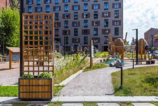 На территории комплекса находятся спортивные и детские площадки, места для отдыха, выполнен ландшафтный дизайн с взрослыми деревьями. Территория находится под круглосуточной охраной. Для автовладельцев предусмотрен подземный, отапливаемый паркинг на 907 мест. К паркингу можно спустится на лифте.