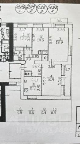 — 4 изолированные комнаты (10.3 + 10.5 + 10 + 8.9 м²),