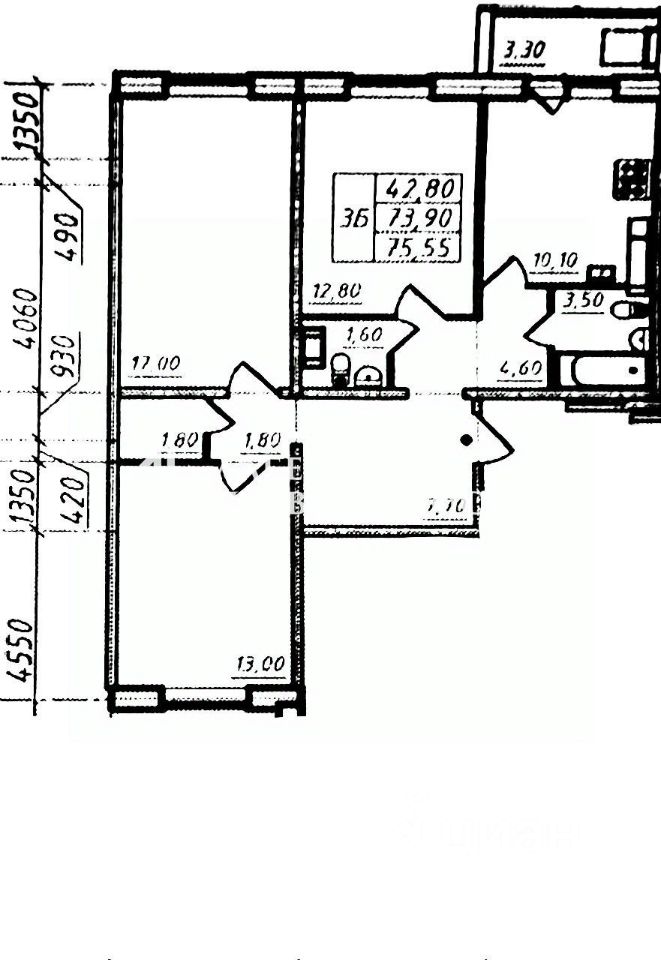 - Совмещенный санузел (3.5 м²) и ВТОРОЙ санузел (1.6 м²).