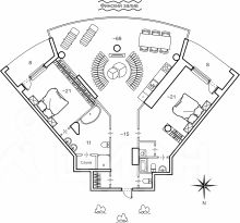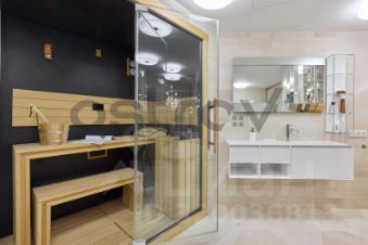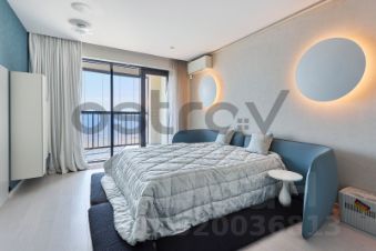 мастер спальня 21м.кв. с санузлом, сауной и лоджией 8,3м. с не менее прекрасным видом на залив и прибрежную зону, а так же вторая cпальня площадью 21 м.кв., которая так же имеет свой санузел и видовую лоджию 8,1м. Есть гостевой санузел.