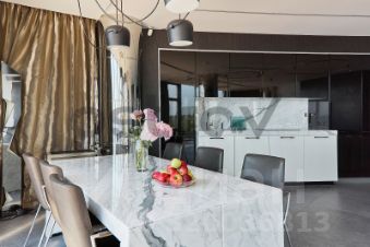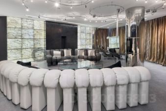 В зоне отдыха расположена изысканная диванная группа с креслами от De Sede. Особый шарм ей придают стеновые панели из мрамора с подсветкой, расположенные вокруг камина от Antonio Lupi. Все полы в гостиной из натурального мрамора с подогревом. Освещение гостиной гармонично зонируется, представлено системами от Flos, Oligo, De Majo.