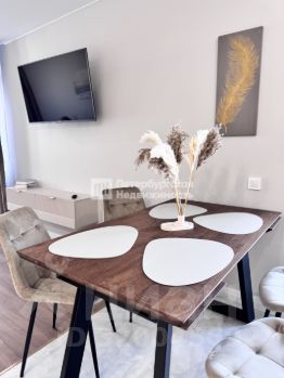 - Есть стиральная машина DeLonghi, раздвижной обеденный стол, мягкие стулья, диван, телевизор Hartens;