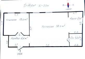 74,6 м²