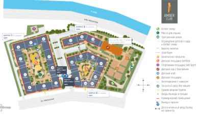 Дом высокого комфорт-класса, окружен развитой инфраструктурой - в пешей доступности школы, детские сады и магазины. Во дворе дома детские и спортивные площадки, места для отдыха. На территории комплекса будет организован Amber-сквер с relax-зонами в экостиле и прогулочной аллеей, свой детский сад с бассейном, детский клуб, коммерческие помещения на первых этажах. Входные группы со втором светом, лаунж-зоны с камином и ресепшн для встречи гостей и курьеров. Закрытый двор без машин. Подземный паркинг на -1 этаже. Также в доме будет реализована система умный дом.