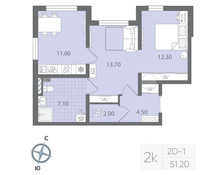 Продается 2-комнатная квартира в ЖК "Цветной город" на 1 этаже. Общая площадь составляет 51.20 кв. м. Квартира с чистовой отделкой Срок сдачи дома: 3 квартал 2026. Жилой комплекс "Цветной город" располагается по адресу Санкт-Петербург, Красногвардейский.